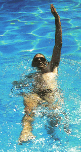 Schwimmen als Ausdauersportart besitzt einen hohen gesundheitlichen Wert und kann in jedem Alter durchgeführt werden. Mögliche Einschränkungen des Bewegungsapparates, die häufig andere Sportarten beeinträchtigen, sind im nahezu schwerelosen Schwebezustand im Wasser nicht von größerer Tragweite. Herzpatienten sollten sich vorher mit ihrem Arzt beraten. Trainingsaufbau Trainingsprogramm Unterschätzen Sie als „Anfänger“ nicht die Anstrengung beim Schwimmen. Eine schlechte Schwimmtechnik und auch Anfängertechnik führt schon bei langsamem Schwimmen zu erheblichen Kreislaufbelastungen. Trainingseinheit für Anfänger Dauer: 5 Wochen, 2 x pro Woche = 10 Trainingseinheiten Intervalltraining: 6 10 Min. Brustschwimmen im Intervall Teilstrecke 15 20m Verhältnis Belastung : Pause 1 : 1 aktive Pause: 3 Min. in Rückenlage langsam Schwimmen 4 7 Min. Intervallschwimmen im Wechsel nur Brustarmzug, dann nur Brustbeinbewegung anschließend Gesamtbewegung auf Teilstrecke 15 20m Verhältnis Belastung : Pause 1 : 1 Dauerschwimmen 2 5 Min. Gesamtbewegung Brustschwimmen Trainingseinheit für Fortgeschrittene Einschwimmen 3 Min. jede Bahn Wechsel zw. Brust- und Rückenlage Intervalltraining: 12 Min. Intervallschwimmen Teilstrecke 25m Verhältnis Belastung : Pause 2 : 1 aktive Pause: 2 Min. langsames Schwimmen, Brust Rücken im Wechsel 8 Min. Intervallschwimmen Teilstrecke 25m Verhältnis Belastung : Pause 2 : 1 Dauerschwimmen 12 Min. Brustschwimmen, jede 5. Bahn in Rückenlage |