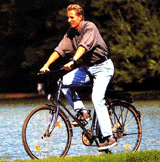 Das Radfahren besitzt für das Herz- Kreislauf- System und auch für orthopädisch vorbelastete Personen einen hohen Stellenwert. Durch die sehr ökonomische Art der Fortbewegung bei gleichzeitiger Entlastung des Stütz- und Bewegungsapparates ist es eine gut dosierbare Möglichkeit der allgemeinen Ausdauerbelastung. Radfahren im Freien als auch Standfahrrad verhilft über ein Training des Herz- Kreislauf- Systems und der Kräftigung besonders der Bein- und Hüftmuskulatur zu einer erhöhten körperlichen Gesamtleistungsfähigkeit, was sich bei der Bewältigung von Alltagsbelastungen (z.Bsp. Treppensteigen) positiv auswirkt. | ||||||||||||
